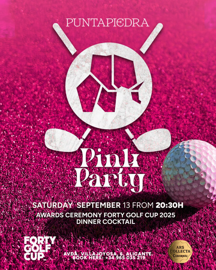 El próximo sábado 13 de septiembre, desde las 20:30 h., Puntapiedra se viste de rosa con nuestra Pink Party para celebrar la gala de entrega de premios de La 2ª edición de la FORTY GOLF CUP. ¡Prepárate para brindar, bailar y celebrar el deporte a la orilla del Mediterráneo bajo una atmósfera mágica!